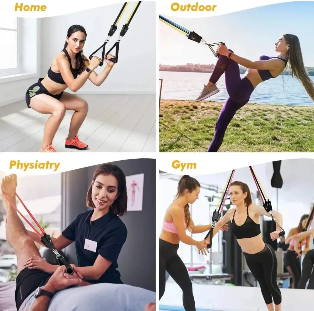 Resistance strap set, sports strap with door anchor, handle, handbag, leg and ankle straps for resistance training, unisex