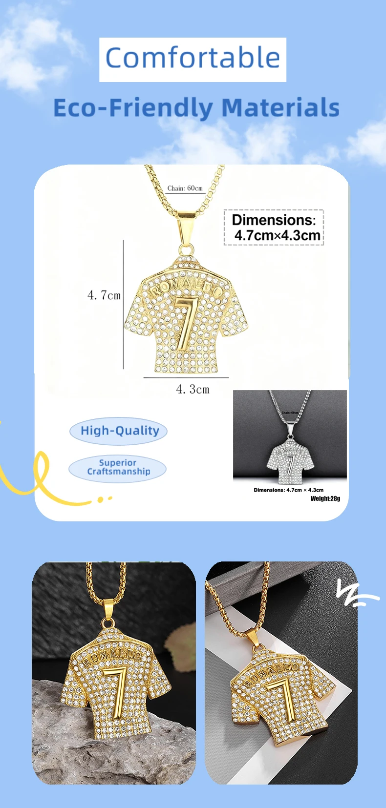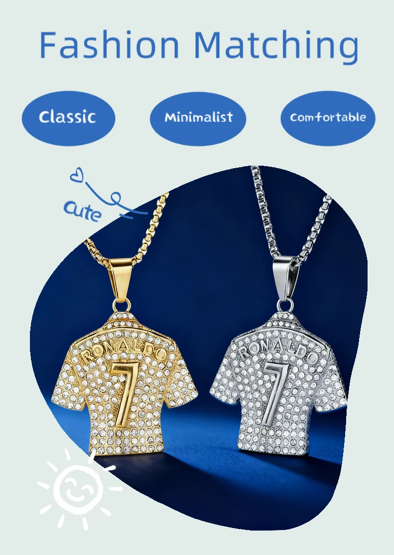 Hip Hop Style Number 7 Jersey Zircon Pendant Alloy Necklace for Men,Ronaldo Commemorative Necklace,World Cup Football Fan Gifts